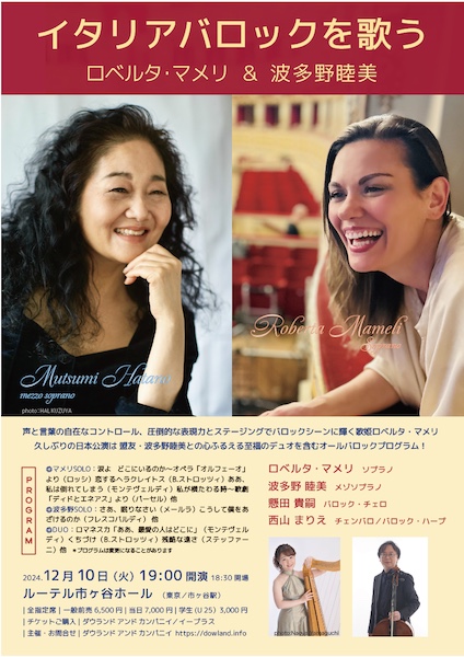 12月16日(火)大阪・ザ・フェニックスホールでロベルタ・マメリ+波多野睦美コンサート