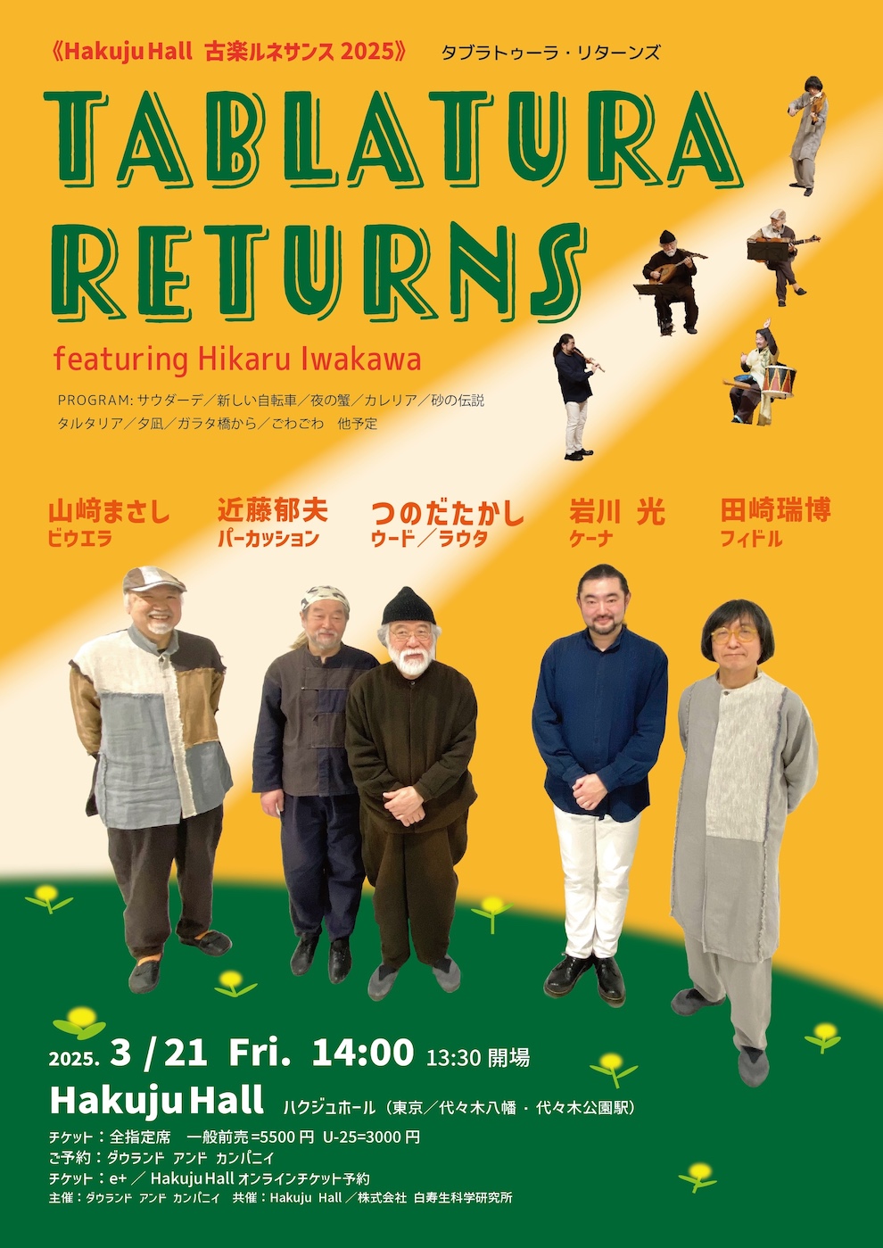 ダウランド アンド カンパニイは、リュート奏者つのだたかしを中心とする音楽制作オフィスです。ヨーロッパの古楽を中心に、コンサート、CDを企画・制作しています。「リュートの好きなところは、音が小さいところ」そう、つのだたかしが言うように、小さい音に耳を傾けていきたいと思います。