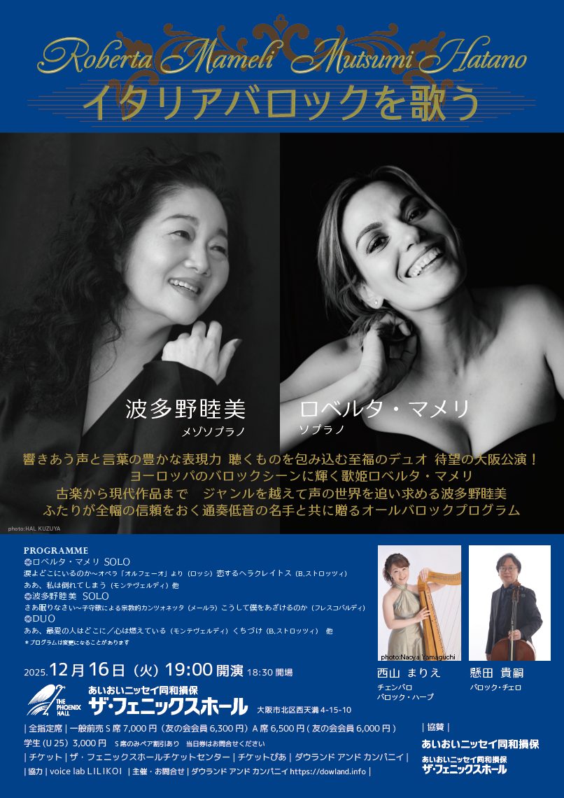 「ロベルタ・マメリ+波多野睦美〜イタリアバロックを歌う〜」では、当日券をご用意します。
